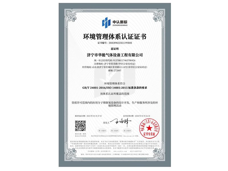 環(huán)境管理體系認(rèn)證證書